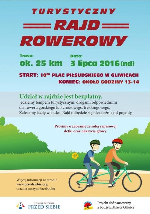 W niedzielę, 3 lipca o godz. 10 z Placu Piłsudskiego wyruszy Turystyczny Rajd Rowerowy organizowany przez Stowarzyszenie Przed Siebie. Cykliści będą mieli do pokonania pętlę o długości 25 km. Rajd zakończy się ok. godz. 14.00.
