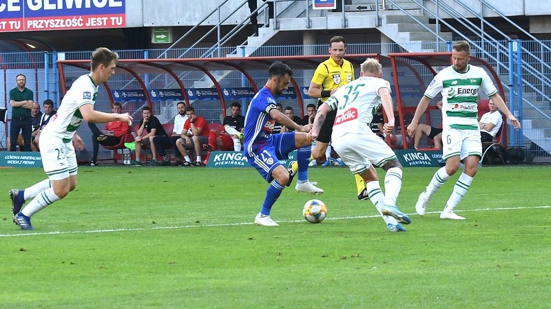 Początek tego pojedynku był jednak wymarzony dla gliwiczan. Już w 2 minucie Kopacz przewrócił w polu karnym Steczyka. Sędzia skorzystał z VAR-u i podyktował rzut karny, który na gola zamienił Świerczok. Goście rzucili się do ataku, aby szybko odrobić stratę i byli bliscy szczęścia. W 14 minucie Kałuziński uderzył z całej siły, ale dobrą interwencją popisał się Plach. Chwilę później Saief przymierzył zza linii szesnastego metra, piłka zatrzymał się dopiero na poprzeczce. Przewaga gości rosła, ale to gospodarze cieszyli się z drugiego gola. W 32 minucie Badia dośrodkował z prawej strony, w polu karnym pojedynek główkował wygrał Czerwiński i piłka po jego strzale odbiła się od słupka i wpadła do bramki.