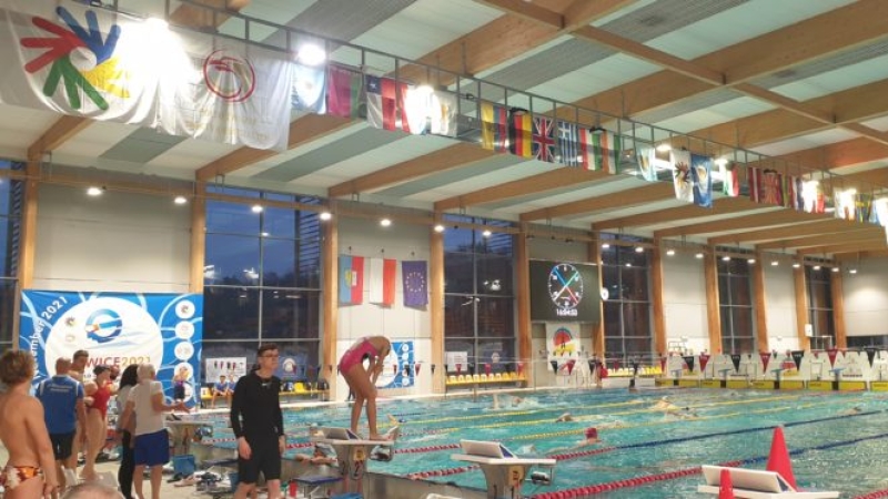 W krytej pływalni Olimpijczyk o medale walczą najlepsi niesłyszący pływacy. Startują na dystansie 25 m.