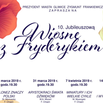 W najbliższy weekend rusza tegoroczna, jubileuszowa edycja cyklu koncertowego „Wiosna z Fryderykiem”. W cztery kolejne (począwszy od 24.03) niedziele w zaciszu Palmiarni Miejskiej w Gliwicach będą odbywać się koncerty, podczas których zostanie zaprezentowana twórczość m.in Fryderyka Chopina, Stanisława Moniuszki, Grażyny Bacewicz, Modesta Musorgskiego czy Wolfganga Amadeusza Mozarta.